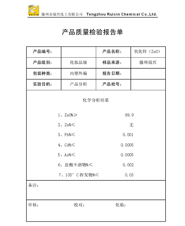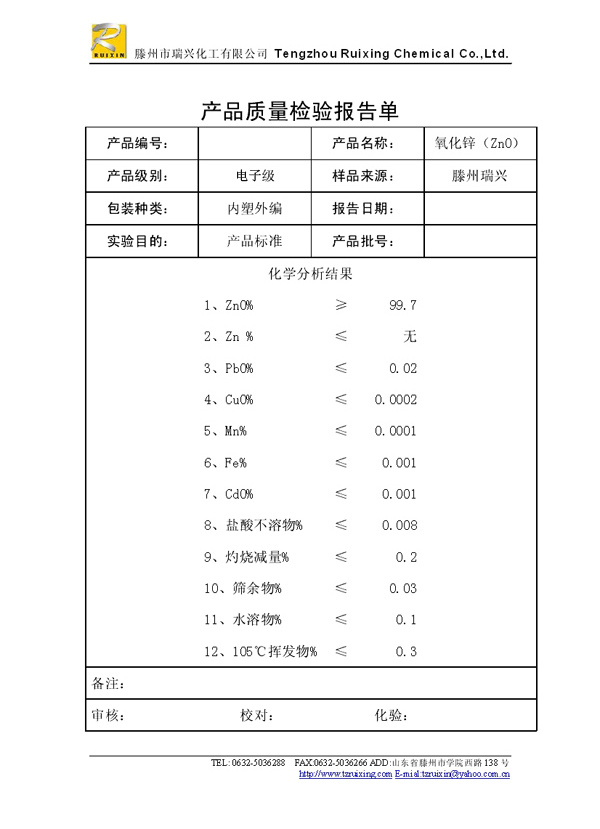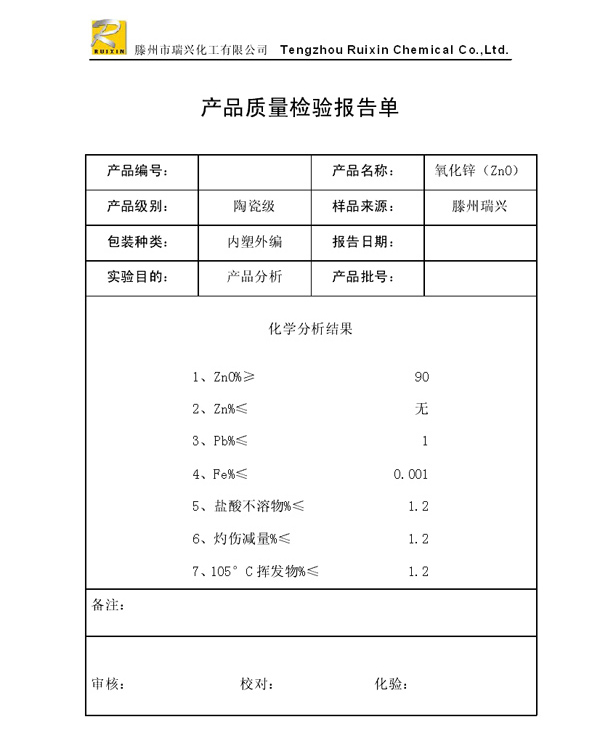 瑞興化工有限公司是生產(chǎn)氧化鋅的重點企業(yè),于2008年通過ISO9001:2008質(zhì)量管理體系認證。“瑞興”牌氧化鋅在國內(nèi)擁有較大穩(wěn)定的市場,并遠銷東南亞、中東、中南美等國家和地區(qū),在國內(nèi)外享有較高聲譽。